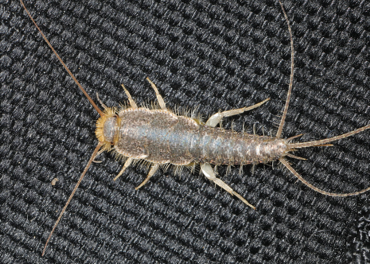 Silverfish get their name due to their fishlike silvery color, wriggling movements, and tapered bodies. These small insects have a unique metallic-gray appearance. These nocturnal creatures are just 1-2 cm in length. They also possess three tail-like appendages along with long antennae.